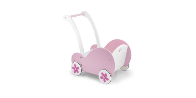 Charmante poussette pour poupée en bois. Roues de bonne qualité et construction stable assurent à votre enfant un amusement garanti. Convient aux poupées qui font jusqu'à 45 cm.